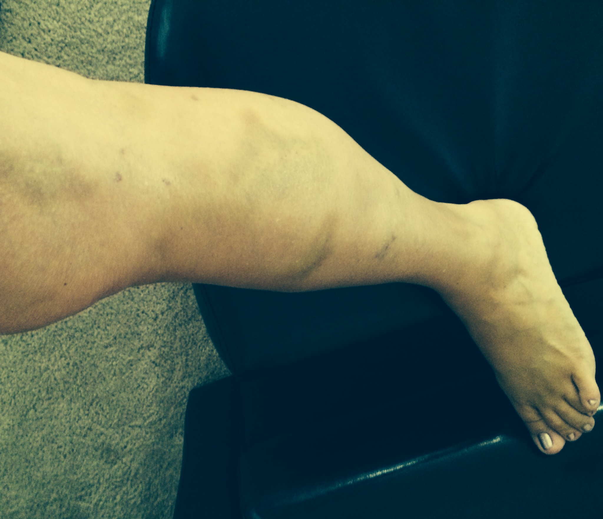 The aftermath. OUCH! Bruising caused by the needle. It took about 3 weeks for the bruising to heal.