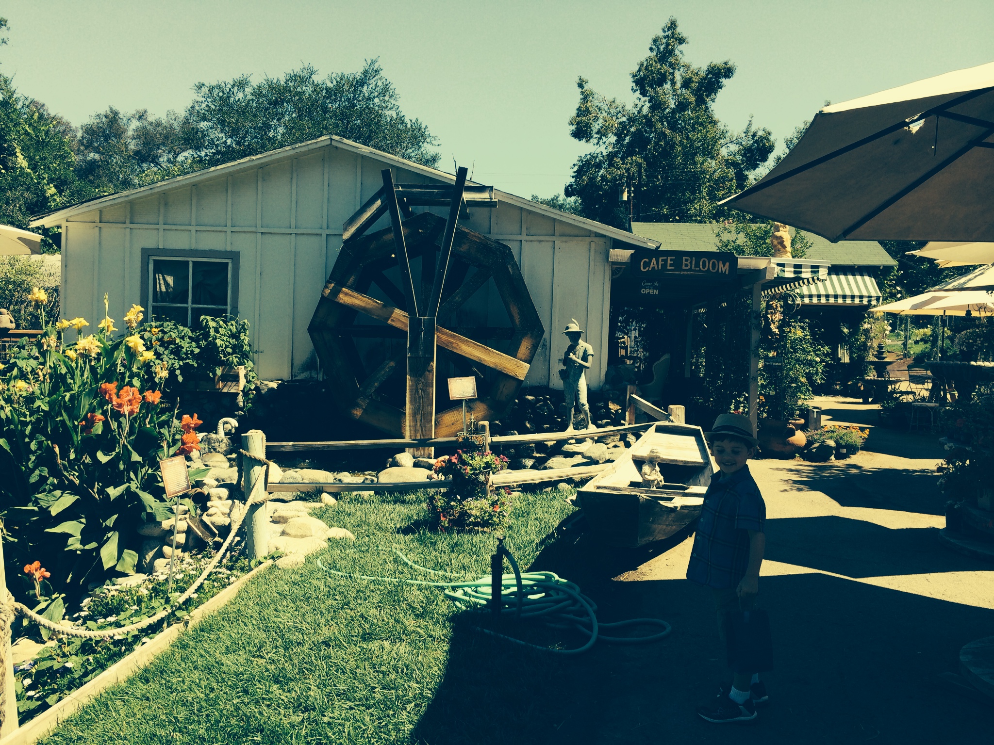Cafe Bloom is a vintage lovers paradise. All the decor is antique and unique. From the deck you can see nearly the entire farm including a barn with goats and a large fish pond.
